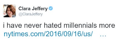 Earlier today, Mother Jones Editor-in-Chief Clara Jeffery openly avowed her hatred of an entire generation: