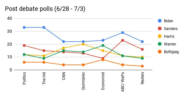 Seven polls of the Democratic primaries that have rolled out since the most recent debate: