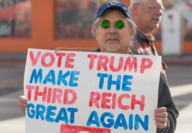 Broderick may not know why his assessment of the situation has changed, but from the outside it seems pretty obvious. For eight years, Democrats have mobilized opposition to Republicans by casting Donald Trump and his supporters as fascism on the march. In response, Democratic journalists and academics alike did their best to keep the discourse in a constant state of hysteria. Then a month ago, the Democratic marketing machine rolled out a new line of messaging: instead of being a scary fascist, Trump is just a weird object of ridicule. And in direct response, Democratic media personalities like Broderick are dutifully abandoning their entire assessment of the American right.