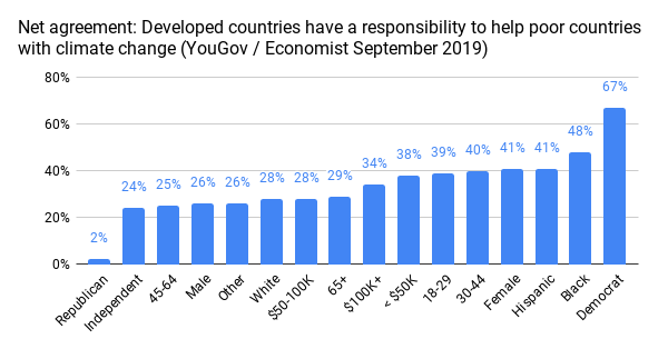 Ask any demographic group, and most people will agree – rich countries need to help poor countries with climate change. That’s what YouGov / Economist found in its latest poll: