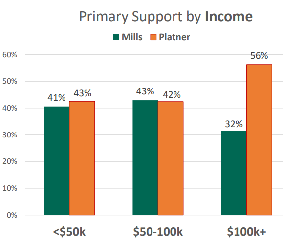 Same trend: Platner outperforms Mills among educational group. Finally, no need for me to create a special visualization for income, because the Pan Atlantic Research poll Jain links to did it for me: