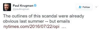 One minor detail with the article Krugman links to, however: it doesn’t actually mention Flynn. Much less his contact with the Russian government, the …