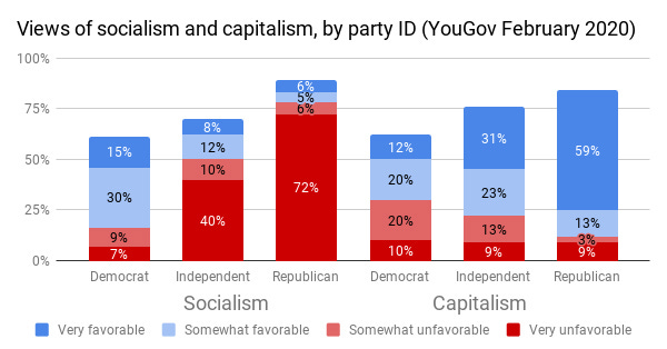 YouGov has published some new polls on socialism, so once again I thought I’d walk through some of the key findings. First, on partisan views of socialism and capitalism: