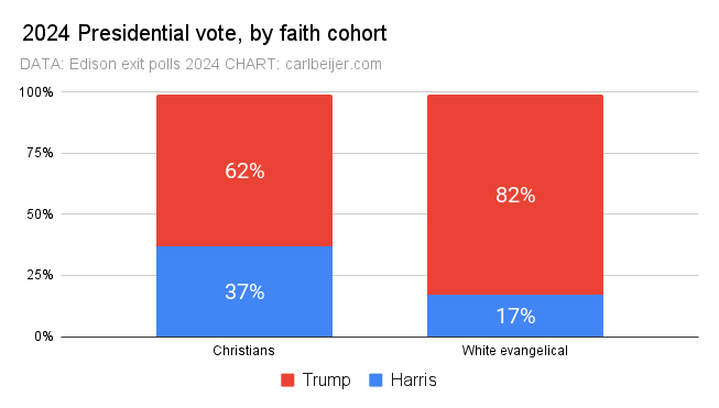 Click on the link, and you won’t get information about Christians — rather, you’ll get a post about white Evangelicals. And this is a problem, because there is a real difference between the two when it comes to support for Trump: