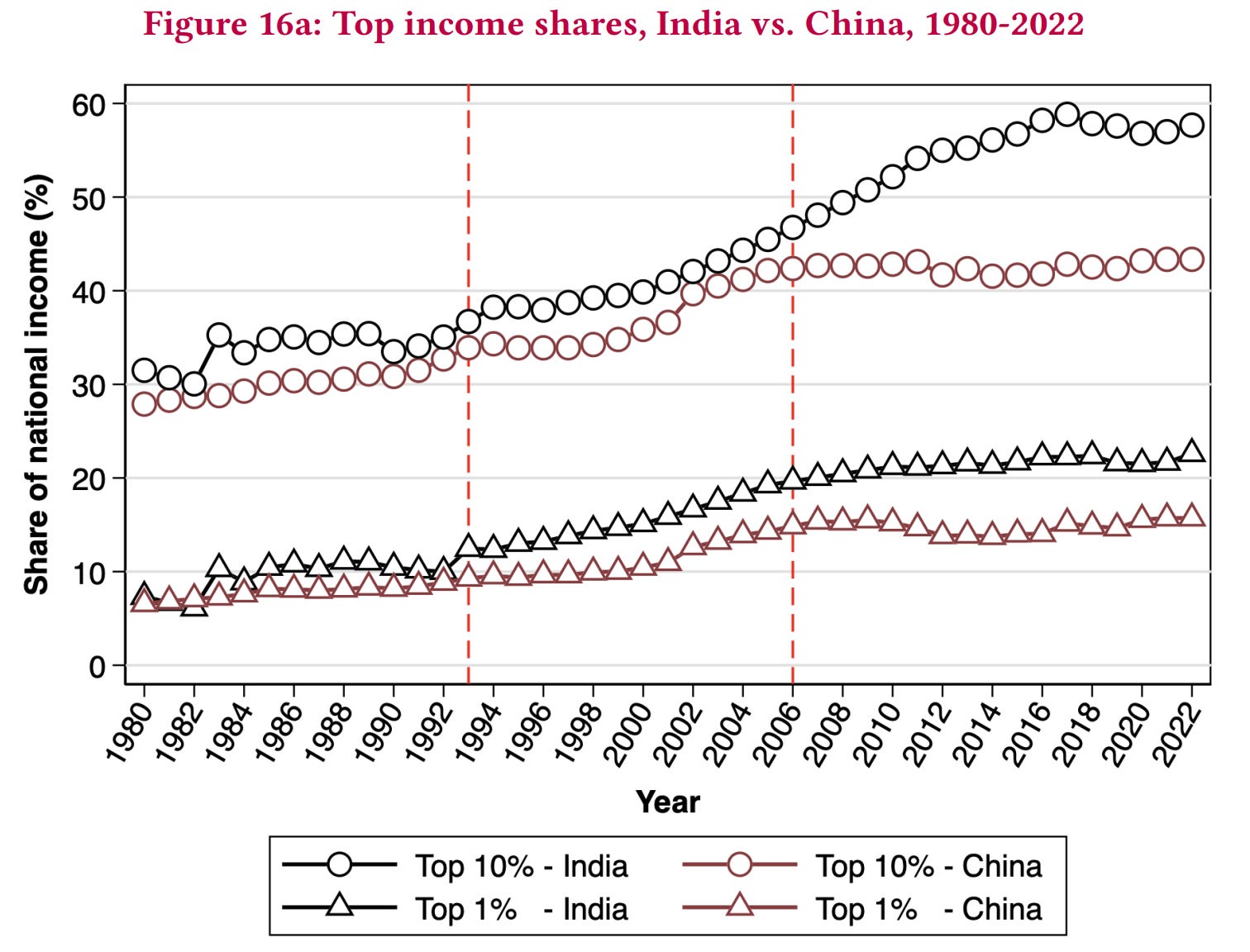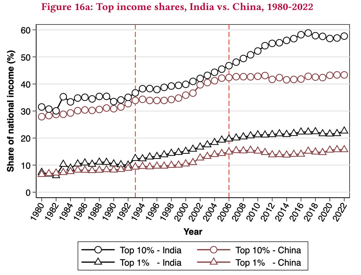 Piketty's new comparison of India and China arrives at the exact opposite conclusion that Noah does.