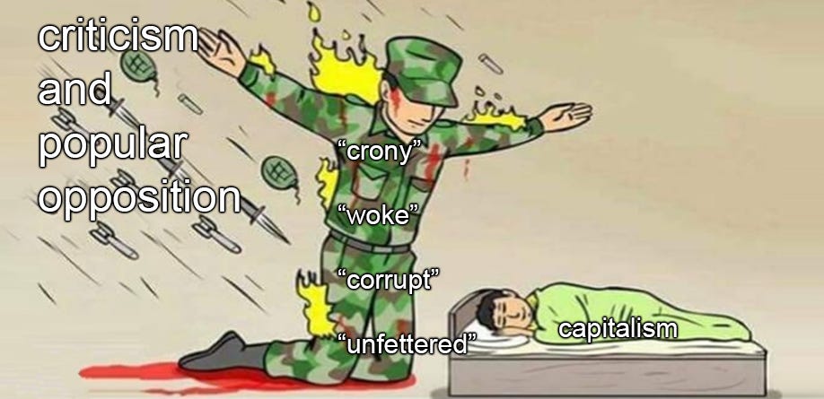 How a popular style of rhetoric shields capitalism from direct criticism.